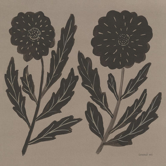 Floral Simplicity I Cream White Modern Wood Framed Art Print with Double Matting by Nai, Danhui