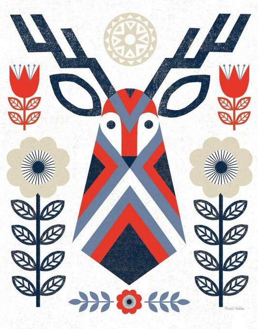 Folk Lodge Deer II Red Navy White Modern Wood Framed Art Print with Double Matting by Mullan, Michael