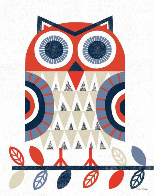 Folk Lodge Owl Red Navy White Modern Wood Framed Art Print with Double Matting by Mullan, Michael