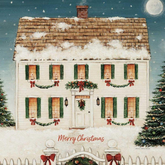 Merry Lil House Sq Merry Christmas White Modern Wood Framed Art Print with Double Matting by Brown, David Carter