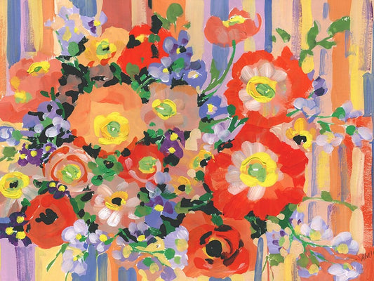 Folk Bouquet Black Ornate Wood Framed Art Print with Double Matting by Zwara, Ania