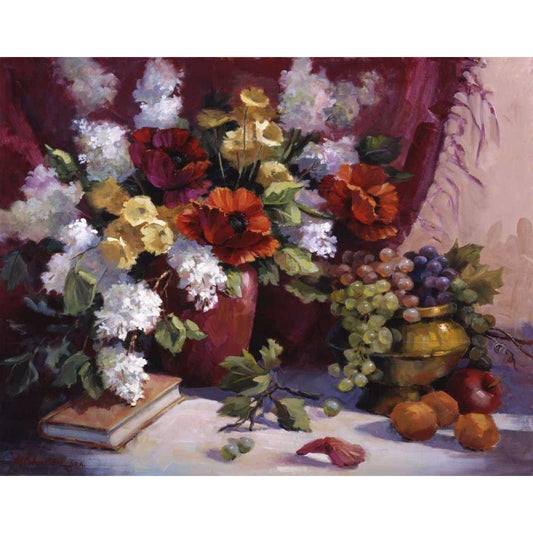 Foliage Flowers And Fruit II Black Modern Wood Framed Art Print with Double Matting by Vision Studio