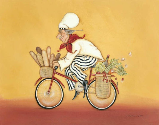 Biking Chef White Modern Wood Framed Art Print with Double Matting by Marrott, Stephanie
