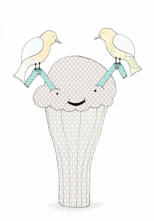 Bird on a Cupcake White Modern Wood Framed Art Print with Double Matting by Ogren, Sarah