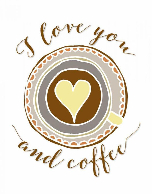 I Love You and Coffee White Modern Wood Framed Art Print with Double Matting by Moss, Tara