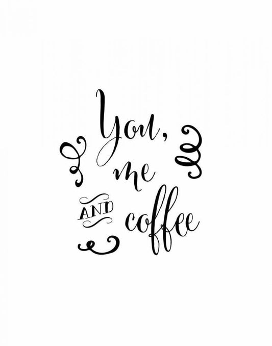 You, Me and Coffee White Modern Wood Framed Art Print with Double Matting by Moss, Tara