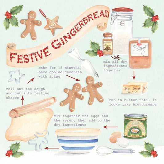 Festive Gingerbread Christmas White Modern Wood Framed Art Print with Double Matting by P.S. Art Studios