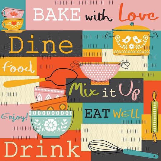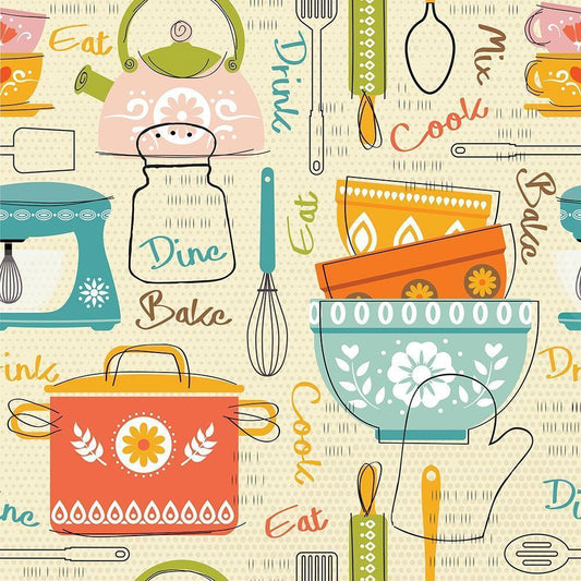 In the Kitchen Pattern I White Modern Wood Framed Art Print with Double Matting by ND Art