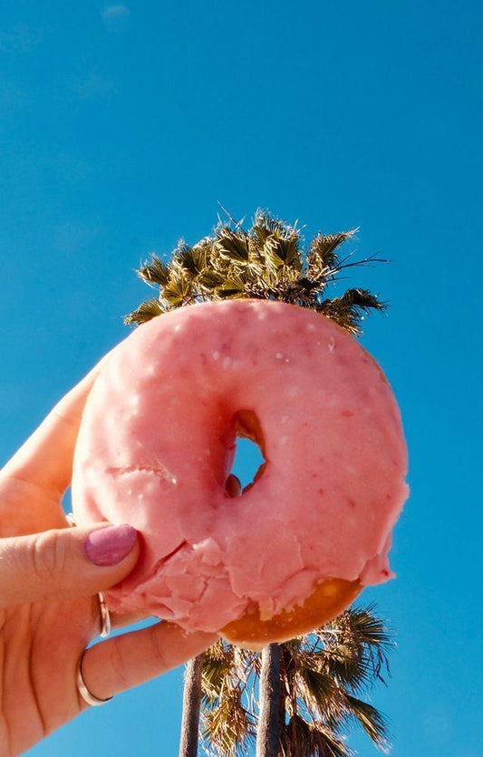 Pink Donut White Modern Wood Framed Art Print with Double Matting by Singleton, Ashley