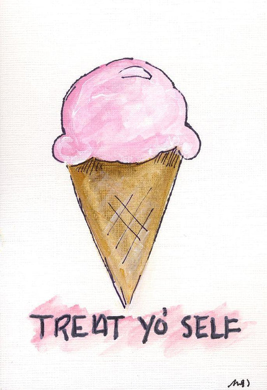 Treat Yo Self White Modern Wood Framed Art Print with Double Matting by Strong, Molly Susan
