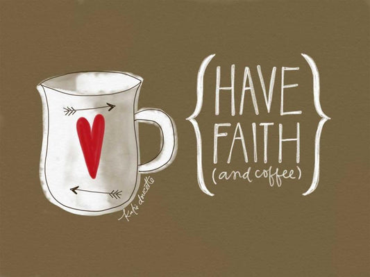 Faith and Coffee White Modern Wood Framed Art Print with Double Matting by Doucette, Katie