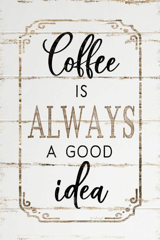 Coffee is Always a Good Idea White Modern Wood Framed Art Print with Double Matting by Pugh, Jennifer