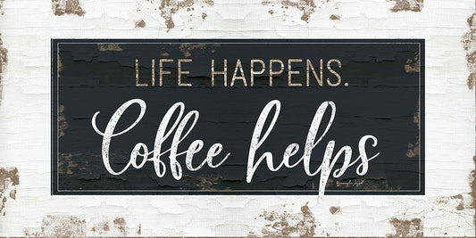 Life Happens, Coffee Helps White Modern Wood Framed Art Print with Double Matting by Pugh, Jennifer