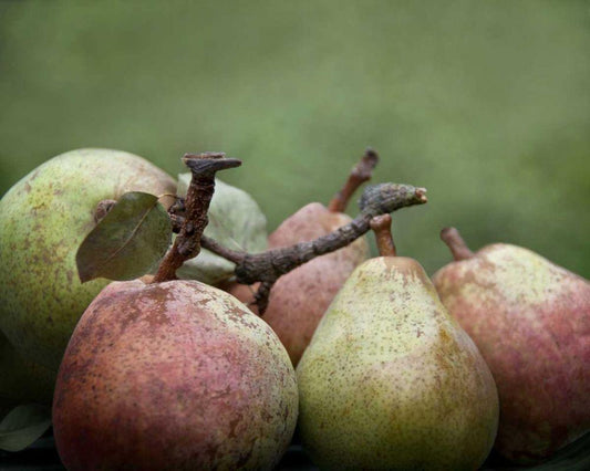 Comice Pears I White Modern Wood Framed Art Print with Double Matting by Perry, Rachel