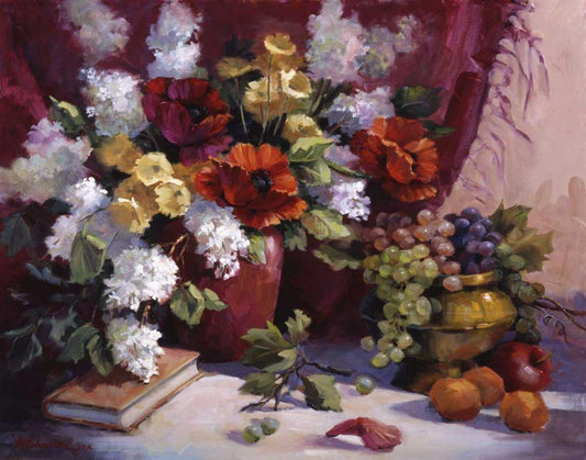 Foliage Flowers And Fruit II White Modern Wood Framed Art Print with Double Matting by Vision Studio