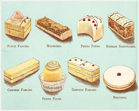 Fanciful Cakes and Tarts I White Modern Wood Framed Art Print with Double Matting by Vision Studio