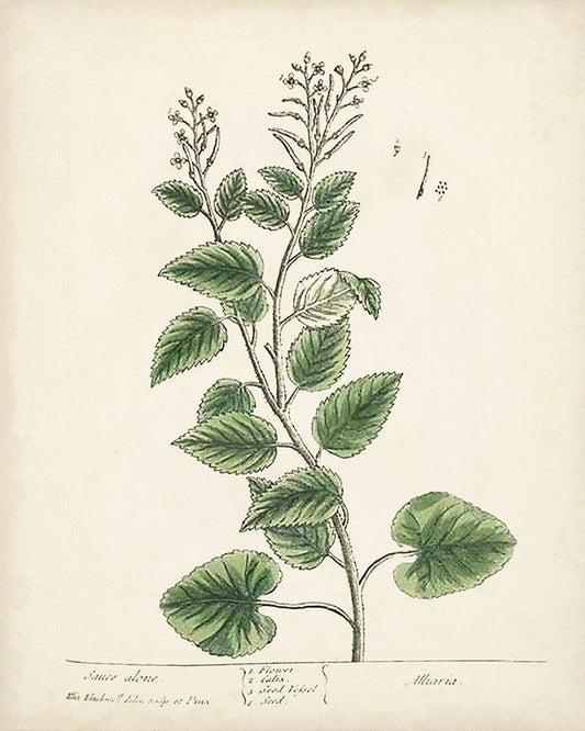Antique Herbs II White Modern Wood Framed Art Print with Double Matting by Unknown