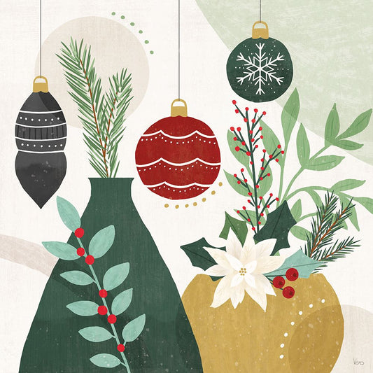 Deco Holiday I White Modern Wood Framed Art Print with Double Matting by Charron, Veronique