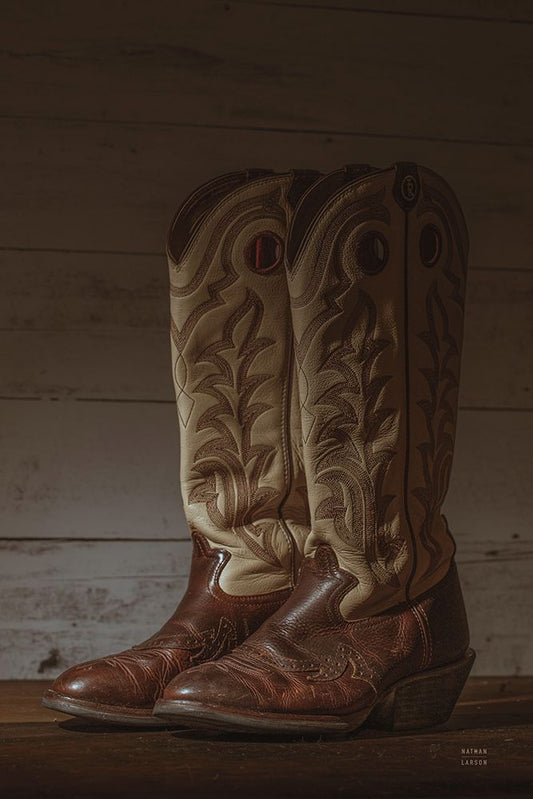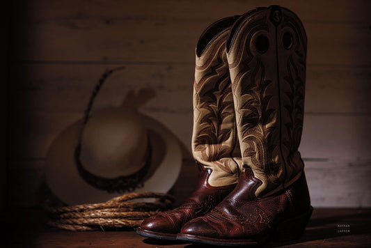 Cowboy Boots X Warm White Modern Wood Framed Art Print with Double Matting by Larson, Nathan