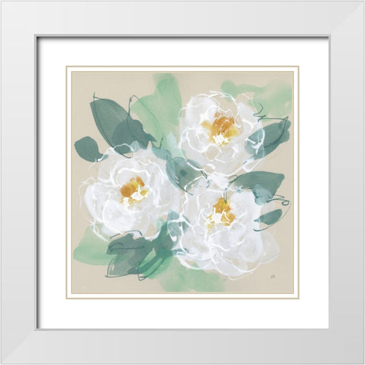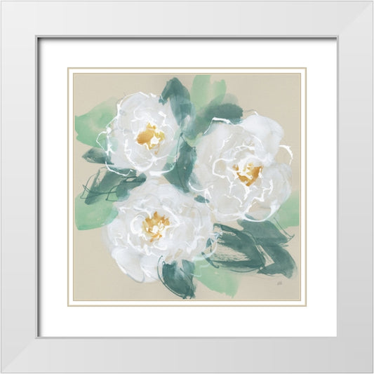 Peonies on Cream I White Modern Wood Framed Art Print with Double Matting by Paschke, Chris