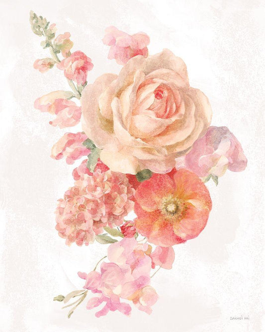 Sorbet Floret II White Modern Wood Framed Art Print with Double Matting by Nai, Danhui