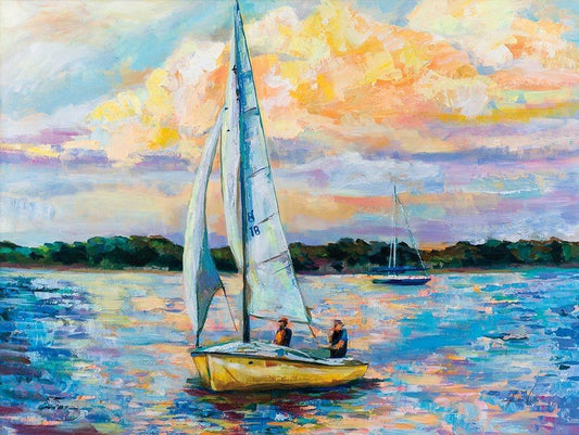 Sunday Sail White Modern Wood Framed Art Print with Double Matting by Vertentes, Jeanette