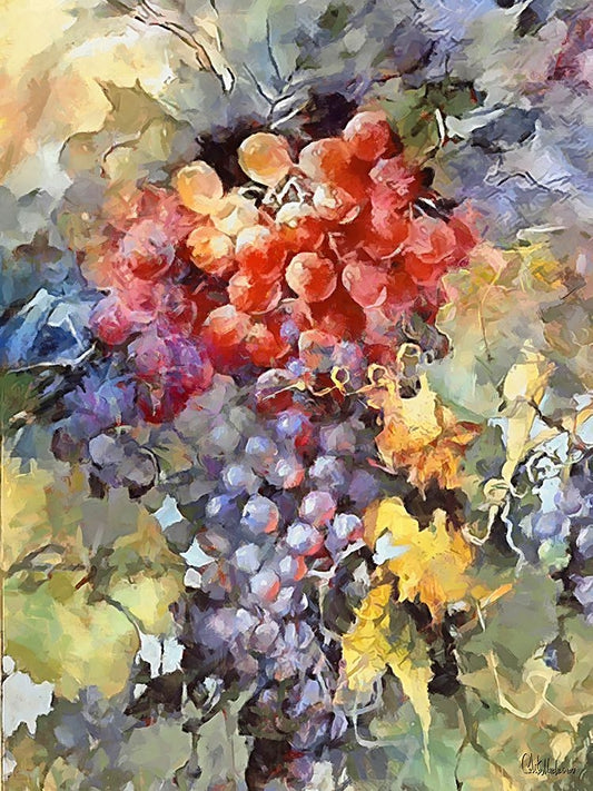 Grapes VIII White Modern Wood Framed Art Print with Double Matting by Medeiros, Celito