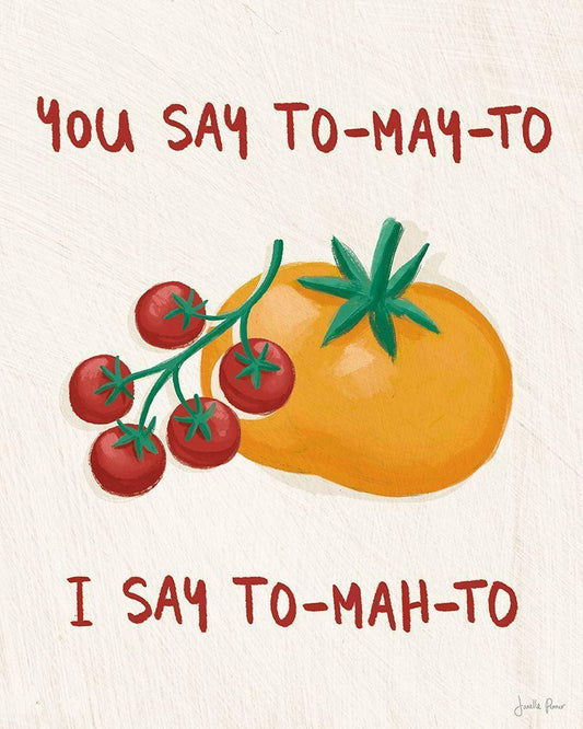 Tomato Toss I White Modern Wood Framed Art Print with Double Matting by Penner, Janelle