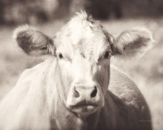 Pasture Cow Neutral White Modern Wood Framed Art Print with Double Matting by Van Swearingen, Debra