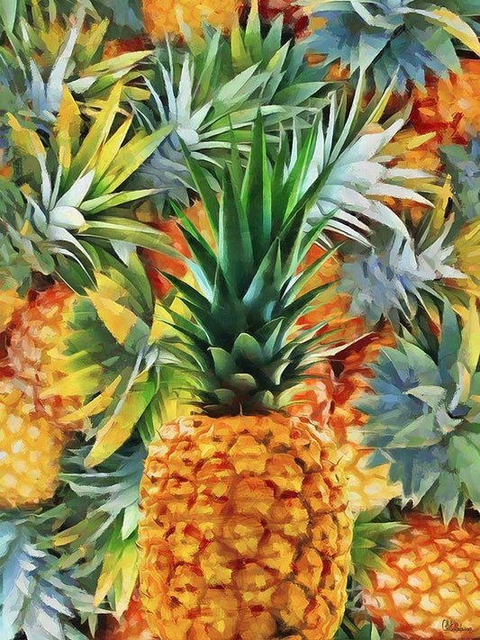 Pineapple White Modern Wood Framed Art Print with Double Matting by Medeiros, Celito