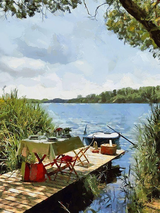 Afternoon Snack by the Lake White Modern Wood Framed Art Print with Double Matting by Medeiros, Celito