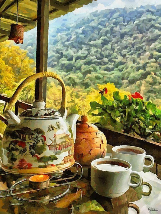 Afternoon Tea in Brazil White Modern Wood Framed Art Print with Double Matting by Medeiros, Celito