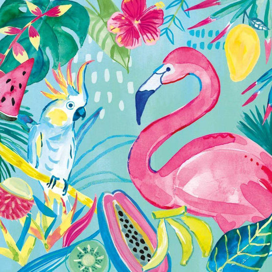 Fruity Flamingos IX White Modern Wood Framed Art Print with Double Matting by Zaman, Farida