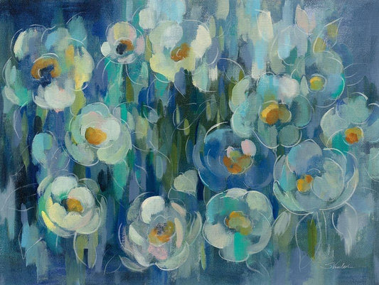 Pretty Blue Floral White Modern Wood Framed Art Print with Double Matting by Vassileva, Silvia