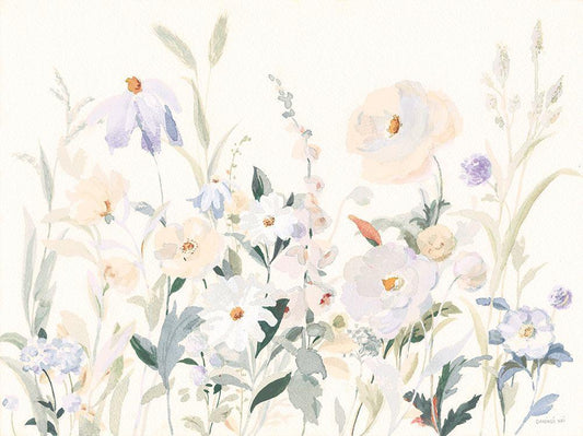 Neutral Boho Wildflowers White Modern Wood Framed Art Print with Double Matting by Nai, Danhui