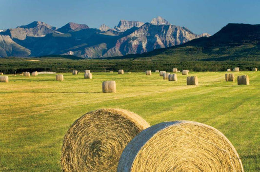 Waterton Hay Bales White Modern Wood Framed Art Print with Double Matting by Majchrowicz, Alan