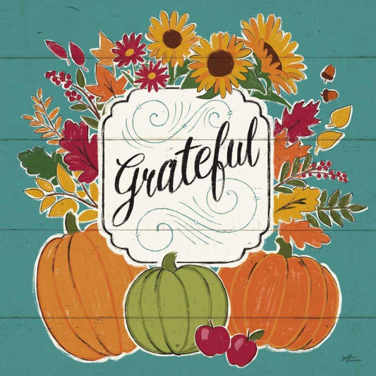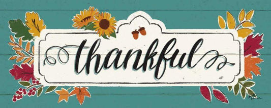 Thankful II Turquoise White Modern Wood Framed Art Print with Double Matting by Penner, Janelle
