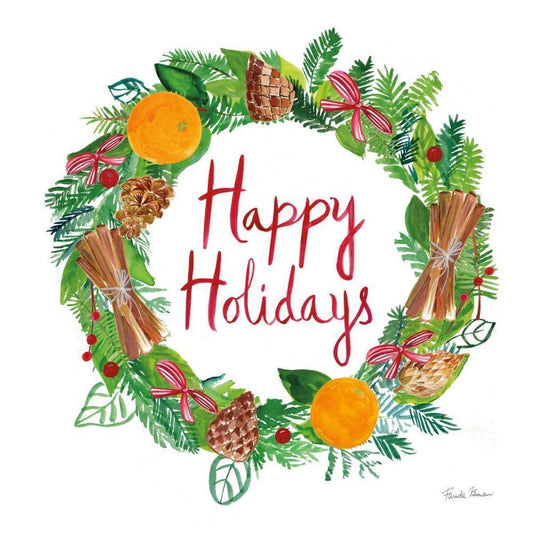 Holiday Wreath II White Modern Wood Framed Art Print with Double Matting by Zaman, Farida
