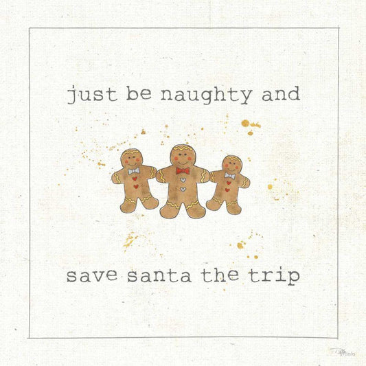 Christmas Cuties VI - Just be Naughty and Save Santa the Trip White Modern Wood Framed Art Print with Double Matting by Pela Studio