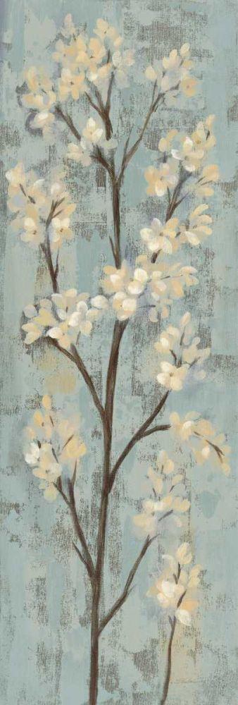 Almond Branch I on Light Blue White Modern Wood Framed Art Print with Double Matting by Vassileva, Silvia