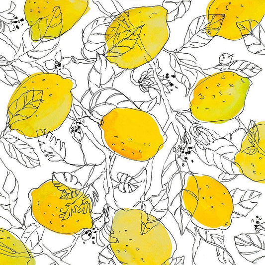 Lemons With Outlined Leaves White Modern Wood Framed Art Print with Double Matting by Loreth, Lanie