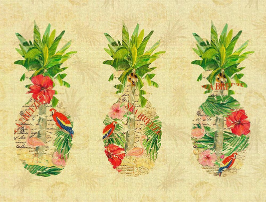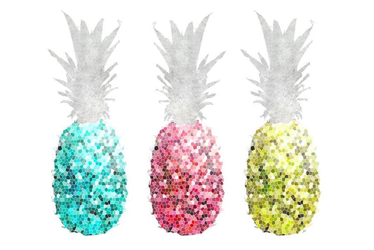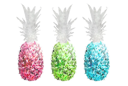 Triple Tropical Pineapple Collage White Modern Wood Framed Art Print with Double Matting by DeRice, Julie