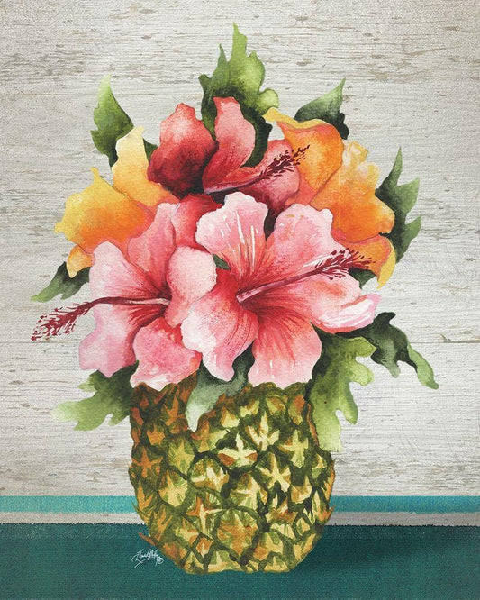 Havana Pineapple White Modern Wood Framed Art Print with Double Matting by James, Nola