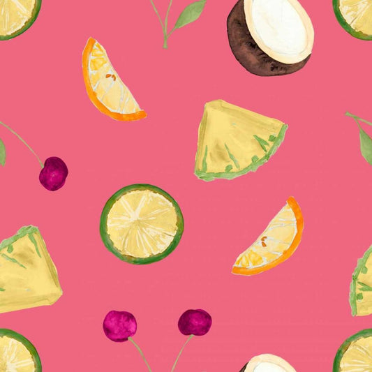 Cherries Pattern on Pink White Modern Wood Framed Art Print with Double Matting by James, Nola