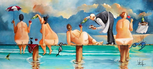 Ladies Afternoon II White Modern Wood Framed Art Print with Double Matting by West, Ronald
