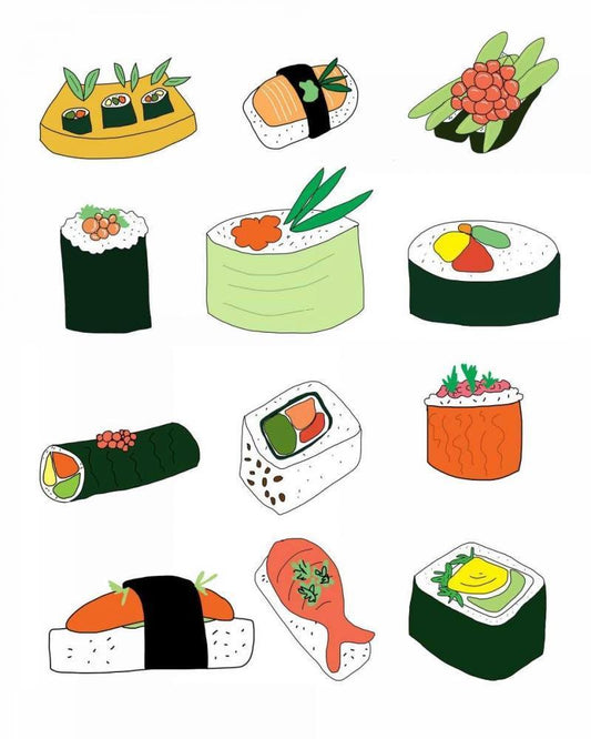 Sushi Set White Modern Wood Framed Art Print with Double Matting by Weiss, Jan