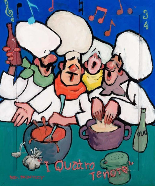I Quatro Tenore White Modern Wood Framed Art Print with Double Matting by Bentley, Robert Dewar