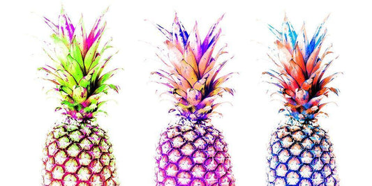 Colourful Pinapples I White Modern Wood Framed Art Print with Double Matting by Orlov, Irena