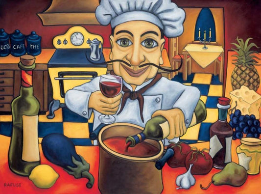 Italian Feast White Modern Wood Framed Art Print with Double Matting by Speck, Loran