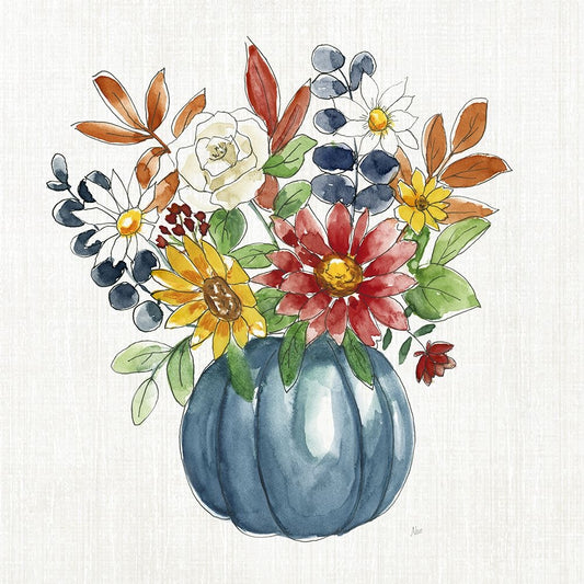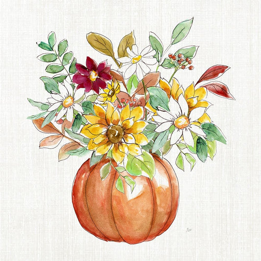 Pumpkin Bouquet I White Modern Wood Framed Art Print with Double Matting by Nan